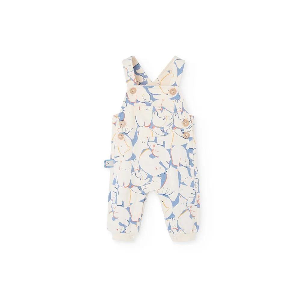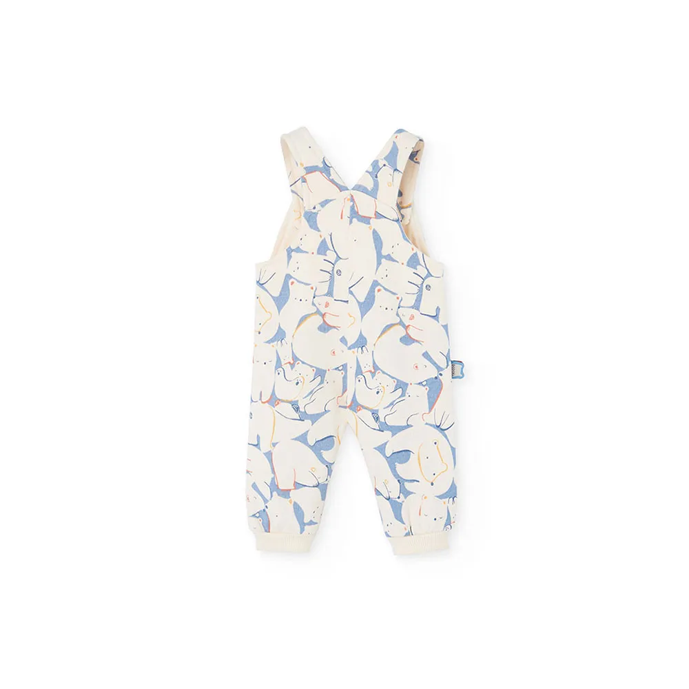Strikket babysett i blått med dyreprint, ideelt for babyer i alderen 1 måned til 2 år.