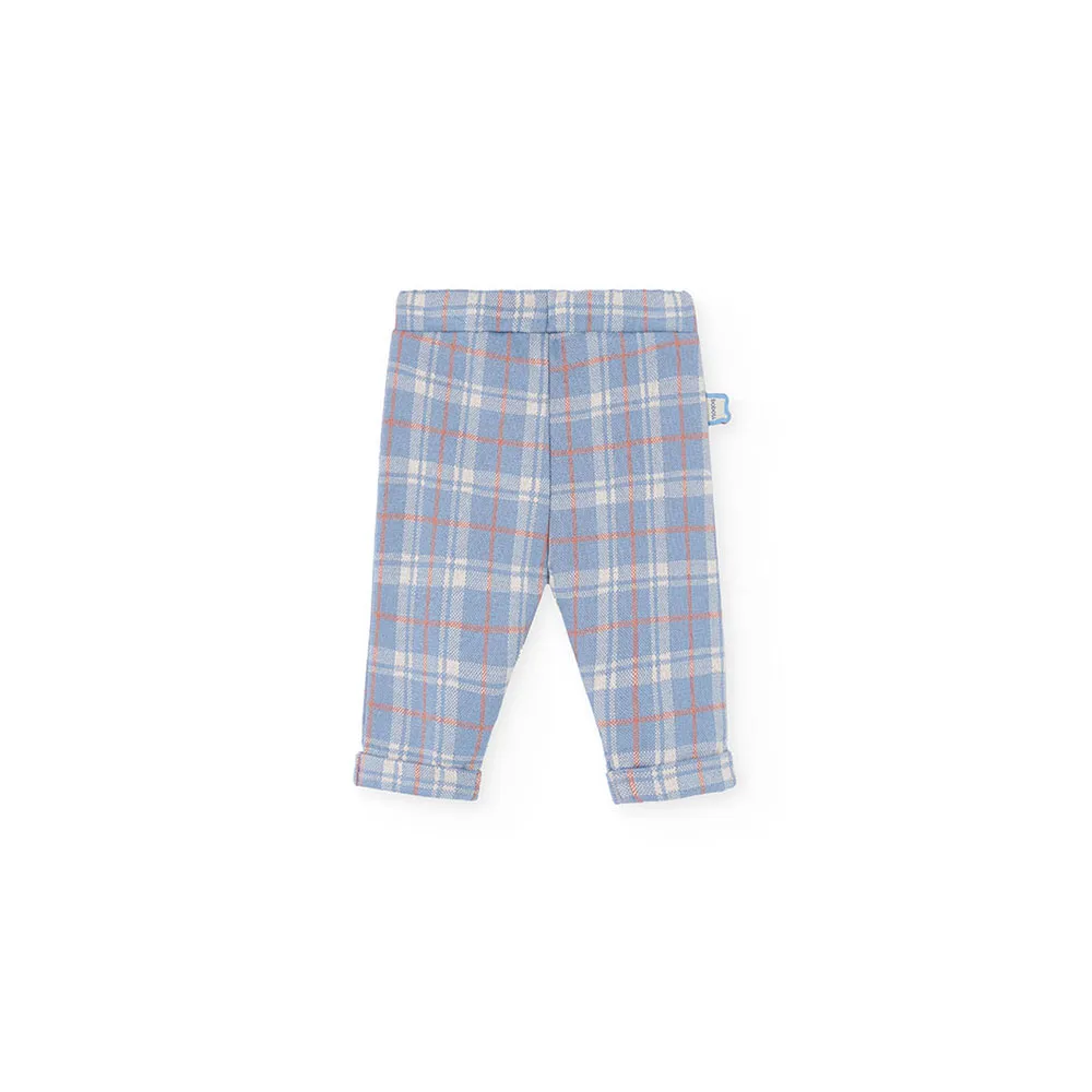 Strikket sett til baby i blått, med dyre- og rutemønster, ideelt for høst- og vintersesongen.