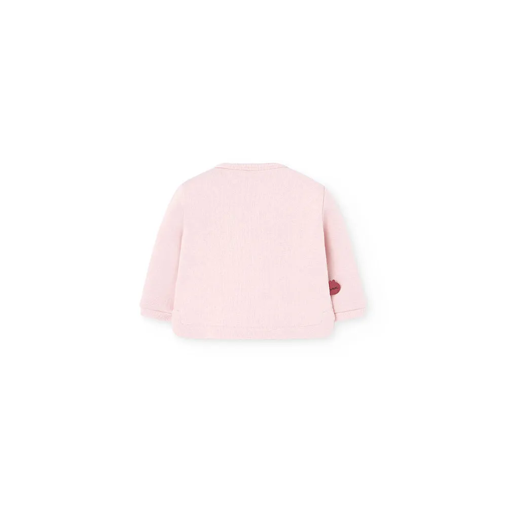 Strikket babysett i rosa, dekorert med dyredetaljer, perfekt for høst- og vintersesongen.
