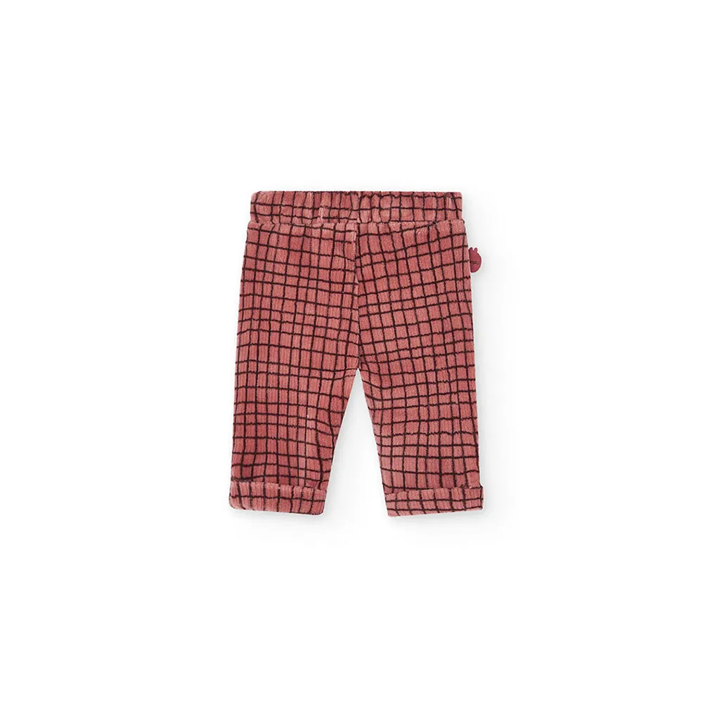 Det består av en genser laget av mykt strikket stoff som sikrer komfort og varme, og bukser med et delikat rutete design som tilfører et klassisk og elegant preg.