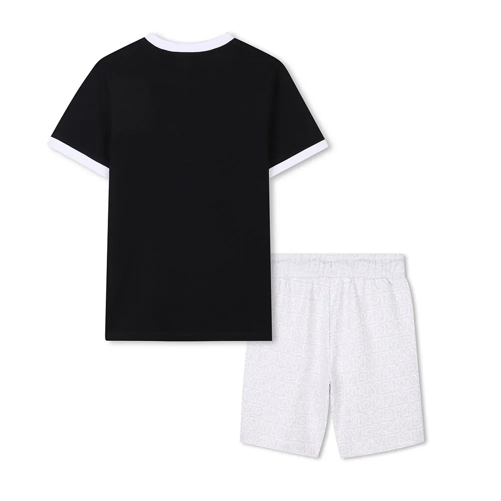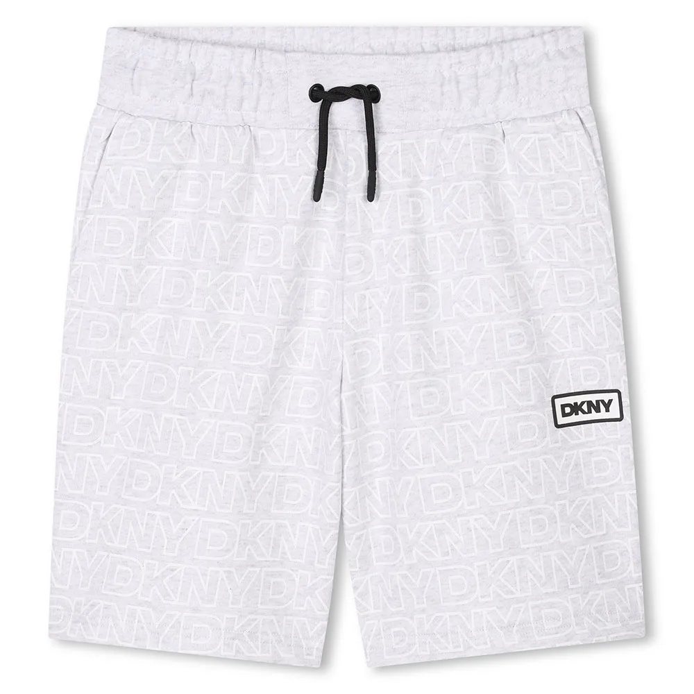 Selges med bomullsfransk frottéshorts med merke over hele trykket.