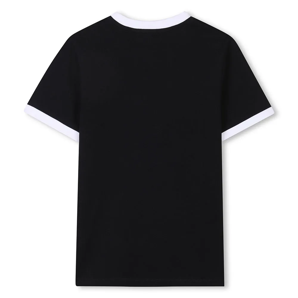 Bomullst-skjorte med korte ermer og relieff-merkeillustrasjon foran.