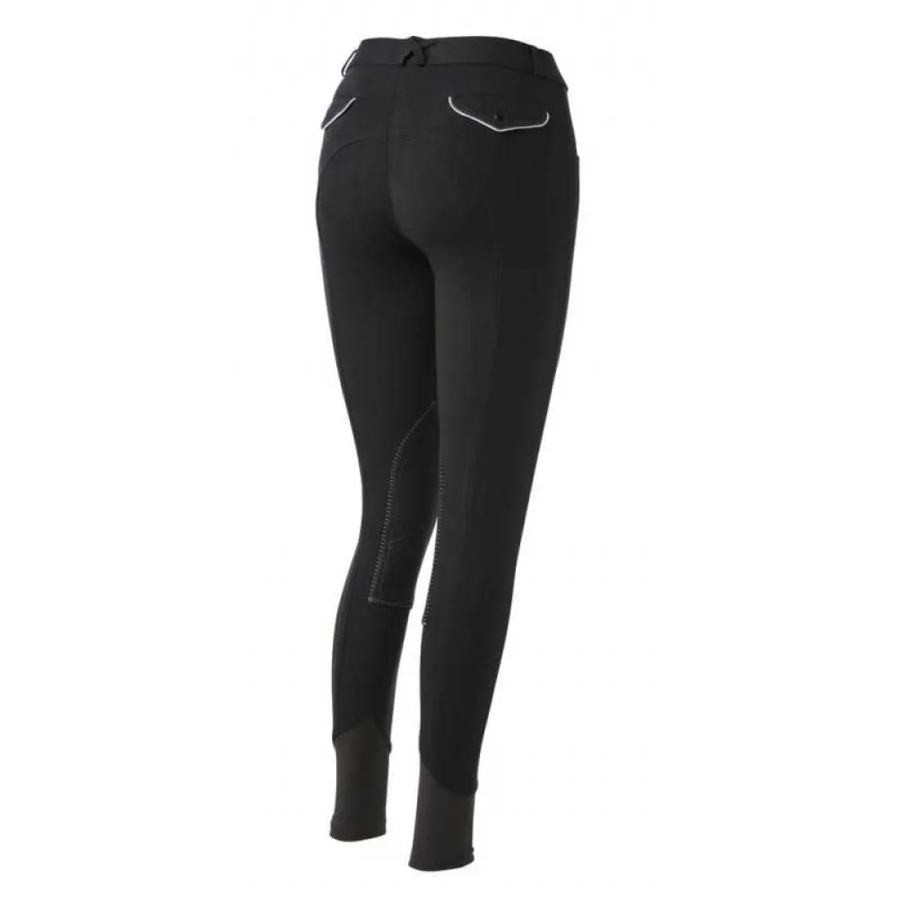 Ridebukser i strikket stil med stretchy underben i dobbel tykkelse elastan som gjør dem lettere å ta på og garanterer et fast sete og full komfort.