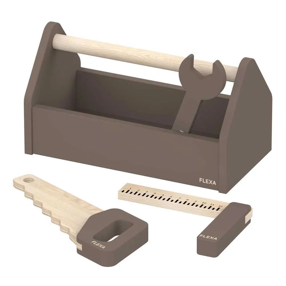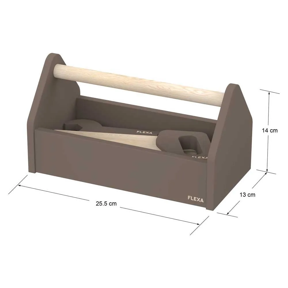 Treverktøykassen er laget med solide håndtak på både boksen og hvert verktøy, noe som gjør den perfekt for små hender.