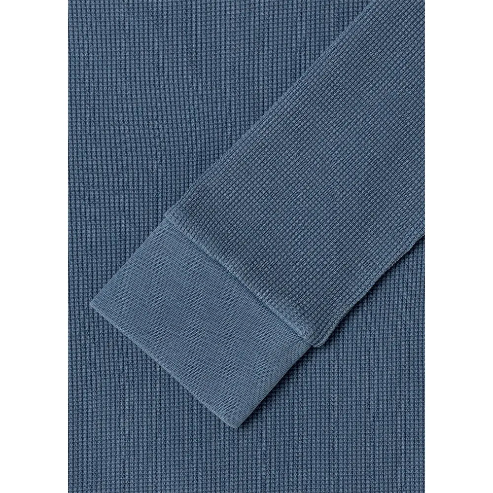 Det fremtredende trekket ved denne hettegenseren er dens unike vaffeltekstur. Denne intrikate, tredimensjonale strikken gir ikke bare en moderne og visuelt tiltalende finish, men forbedrer også komforten ved å skape små luftlommer som gir lett isolasjon uten volum. Det er en moderne vri på et klassisk stoff, som sikrer at han ser skarp ut mens han føler seg helt komfortabel.