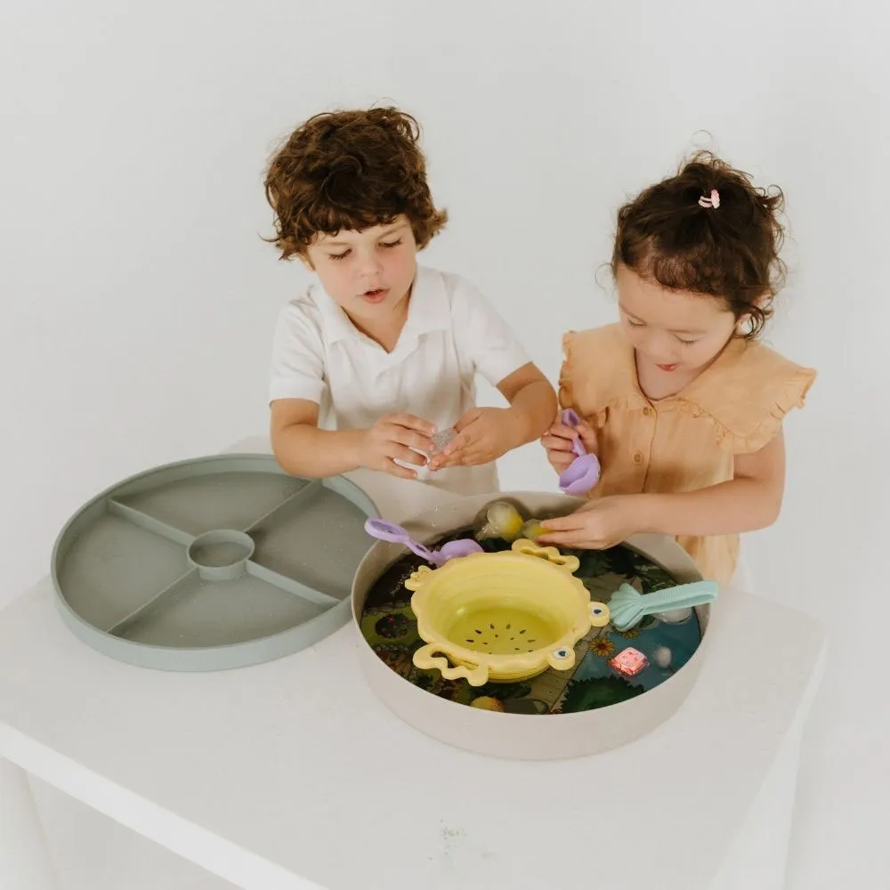Si hei til din sensoriske Tray Play som venter på å bli fylt med hva som helst, alt, og kan tas med hvor som helst! Jellystone Designs´ Tray Play er et 2-i-1 sensorisk brett hvor du kan skape en miniverden i bambusfiber- og melaminbasen eller silikonlokket.