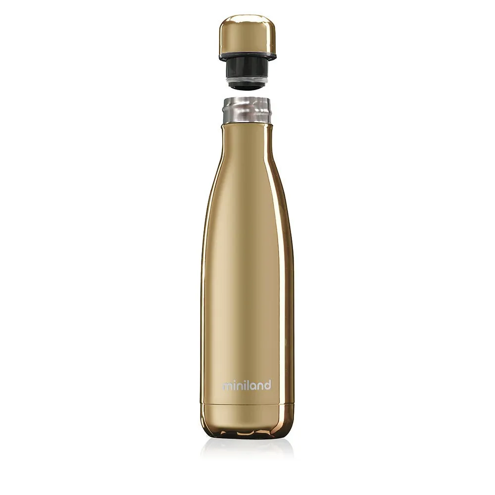 Miniland-serien med 500 ml deluxe-flasker med kromfinish er tilgjengelig i tre forskjellige farger, for foreldre med enhver smak: gull, rosa gull eller sølv.