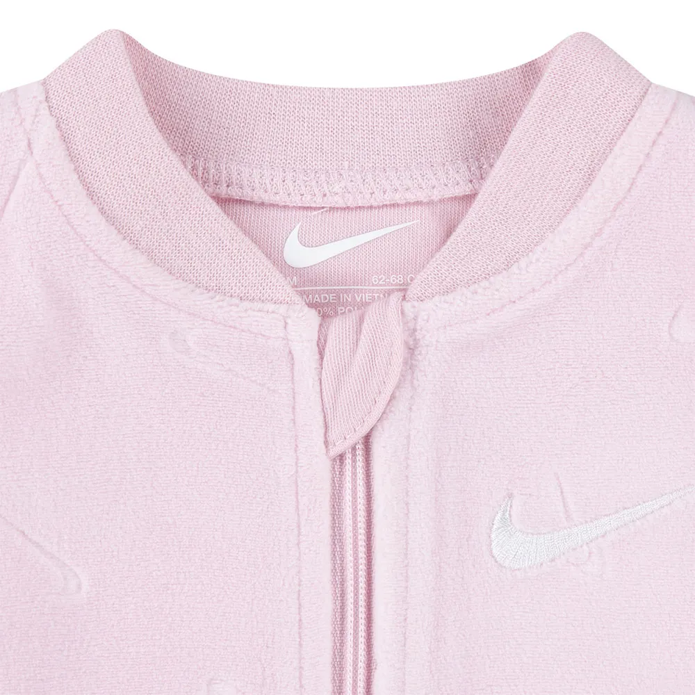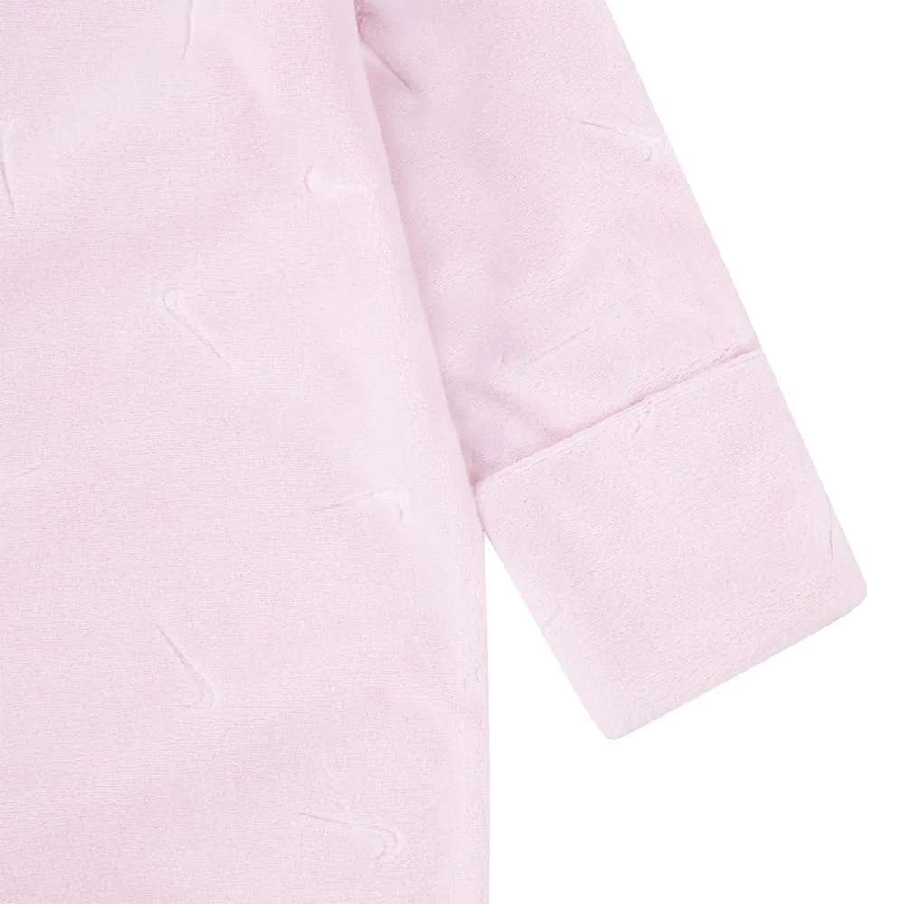 Pakk din lille mester inn i ultimat komfort med NIKE KIDS Essentials sovedrakt. Laget av luksuriøst myk, preget velur, er denne heldressen skånsom mot sart hud og perfekt for koselige lurer. Et foreldrevennlig design utmerker seg med en glidelås i full lengde og sikkerhetsklaff for uanstrengt, klemfri bleieskift. Geniale ombrettbare votter holder små hender varme og forhindrer riper. Fullført med en tettsittende passform og den ikoniske broderte Swoosh-logoen, er den den perfekte blandingen av stil og komfort for babyen din fra lur til lek