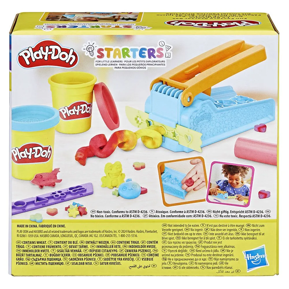 Dette settet er spesielt designet for å være brukervennlig og tilgjengelig, noe som gjør det ideelt for små barn som nettopp har begynt å utforske verden av kreativ lek. Midtpunktet i settet er det ikoniske Fun Factory-verktøyet, en enkel, men genial enhet som lar barn presse ut PLAY-DOH i en rekke morsomme og interessante former. Bare legg PLAY-DOH i Fun Factory, velg en formingsskinne, og trykk ned spaken for å se PLAY-DOH komme ut i et herlig utvalg av former.