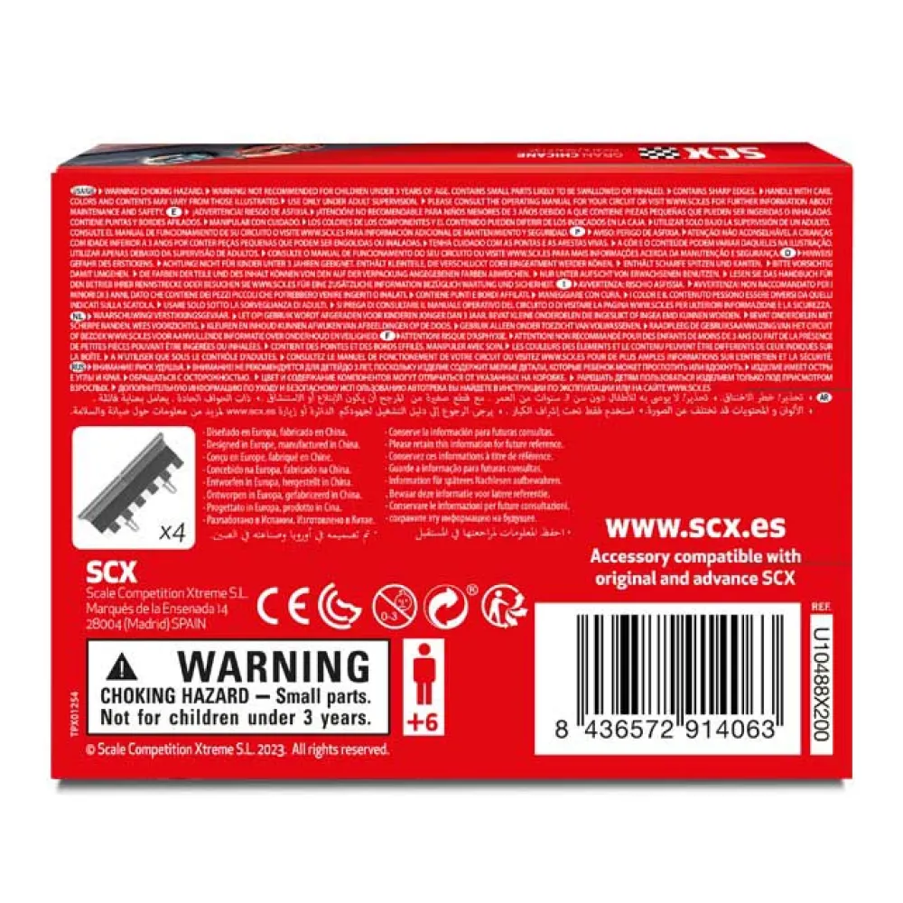 Denne pakken er konstruert for en perfekt og sømløs passform. Hver rett gjerdekant er nøyaktig støpt for å kobles til Scalextric 180 mm rette banestykke, noe som sikrer en sikker og stabil installasjon som ikke vil rikke seg under intens racing. En nøkkelfunksjon er dens universelle kompatibilitet; dette tilbehøret er kompatibelt med Scalextric Original (analog) og Advance (digital) banesystemer, noe som gjør det til et allsidig og fremtidssikkert tillegg til enhver samling. Denne pakken inkluderer 4 enheter av den rette gjerdekanten 180 mm, noe som gir nok dekning til å fullt ut fore to sider av to standard 180 mm rette baner.