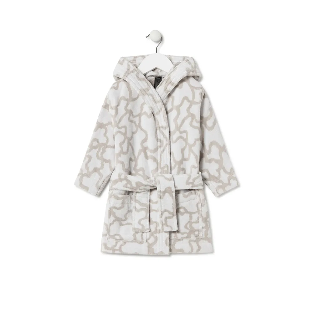 TOUS Rus badekåpe er en Baby TOUS morgenkåpe presentert i et sofistikert Kaos bouclé jacquard-trykk. Dette signaturdesignet er ikke bare for estetikk; stoffets unike tekstur er konstruert for å gi eksepsjonell varme, uovertruffen komfort og god absorberingsevne, noe som sikrer at babyen din tørkes raskt og effektivt etter badet. Si farvel til frysninger og hei til koselige, glade klemmer. Det plysjmaterialet føles vidunderlig mykt mot huden, og pakker babyen din inn i en mild, trøstende omfavnelse som får dem til å føle seg trygge og sikre.