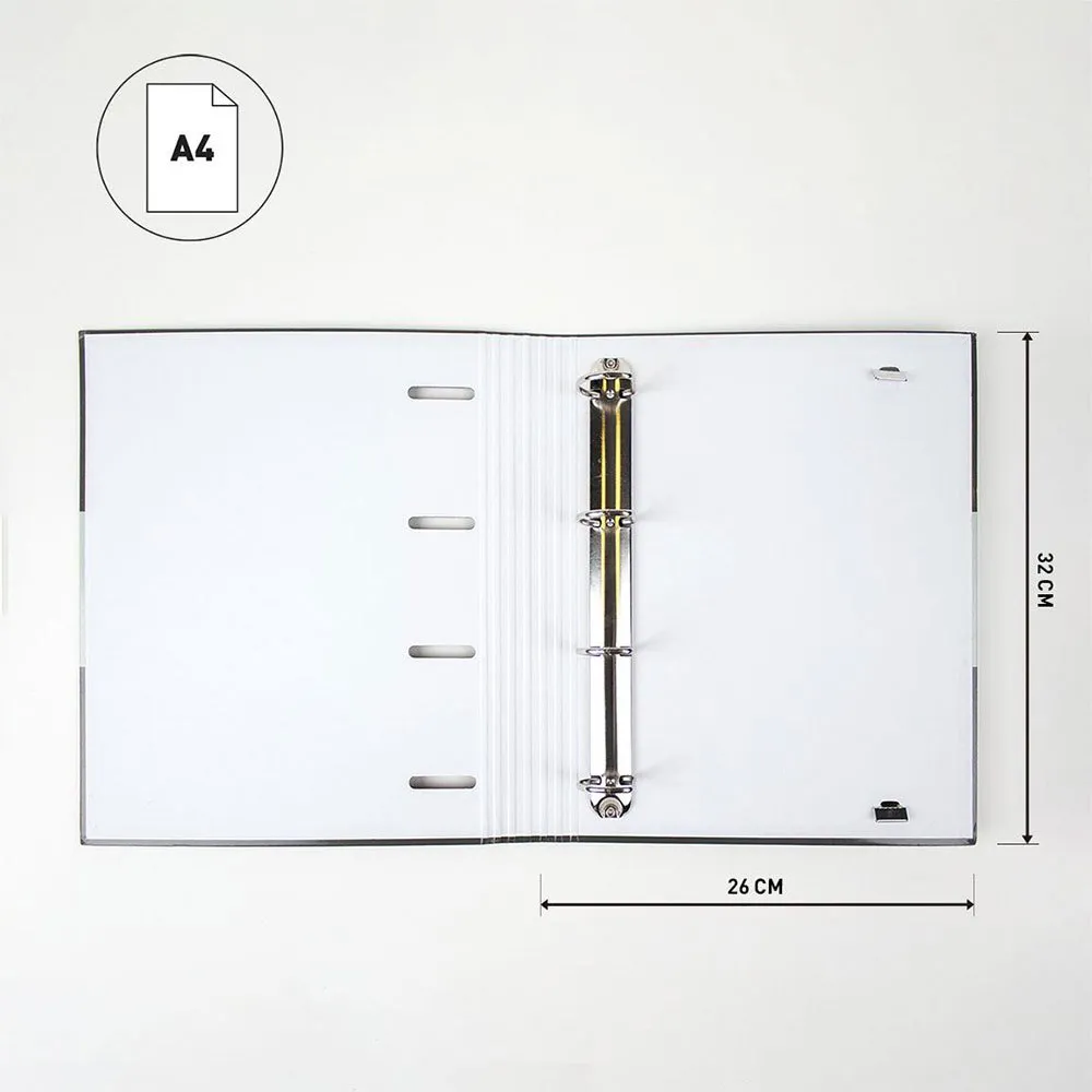 Solidny Mechanizm Ringowy: Wyposażony w trwały system wieloringowy, ten segregator umożliwia łatwe dodawanie, usuwanie i przestawianie dziurkowanych kartek formatu A4, przekładek i koszulek foliowych. Zapewnia niezawodne i elastyczne rozwiązanie do zarządzania wszystkimi przedmiotami.