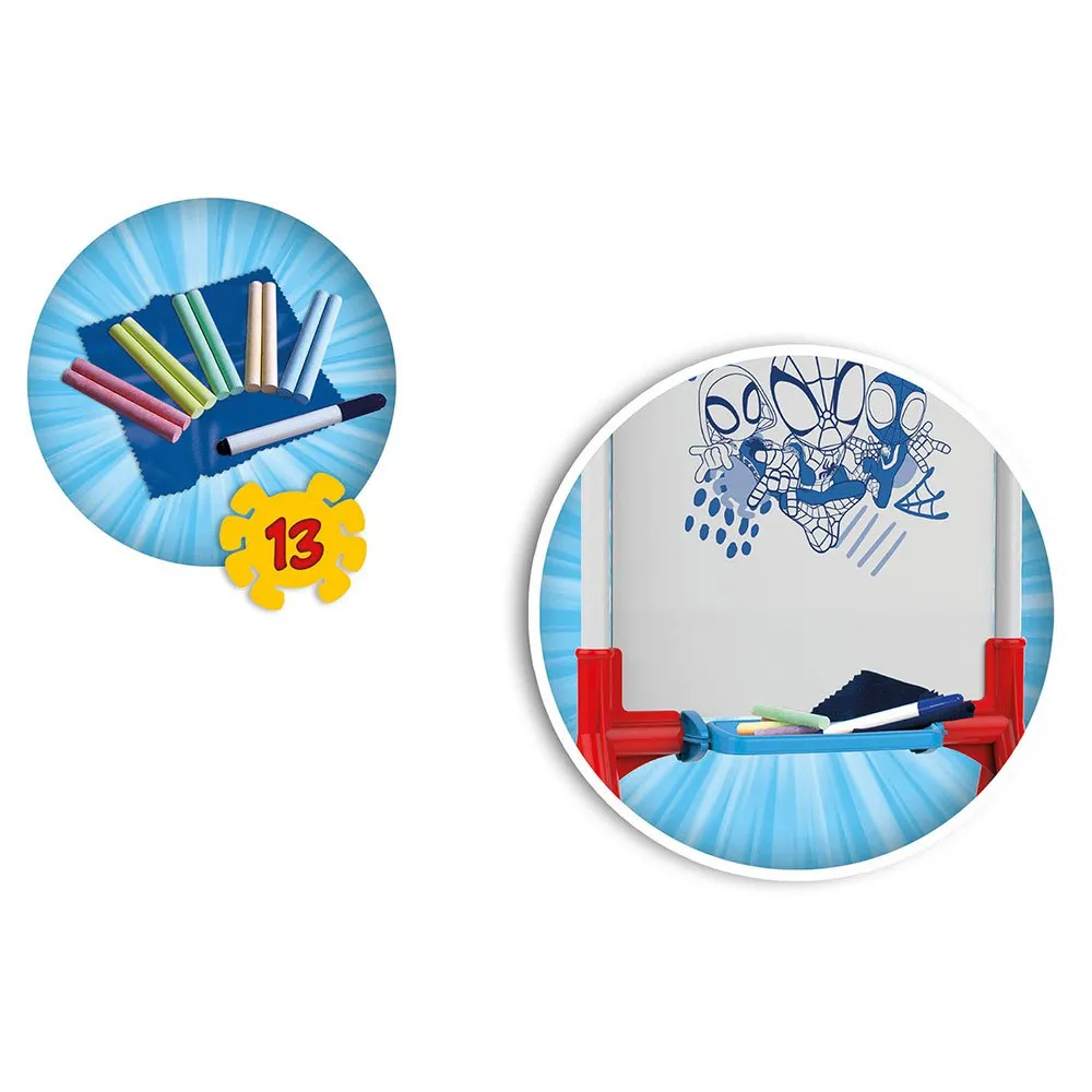 CHICOS Spidey Blackboard jest doskonałym sposobem na nauczenie alfabetu, liczb i nawet podstaw matematyki, takich jak dodawanie i odejmowanie. Jest również doskonałym sposobem na zachęcenie dziecka do kreatywności i wyobraźni.