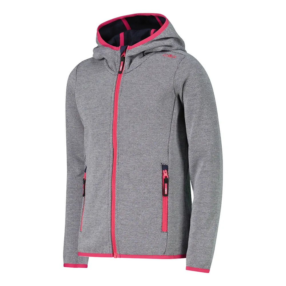 Techniczny wygląd dla tej melanżowej kurtki polarowej z kapturem, zaprojektowanej dla młodych entuzjastów aktywności na świeżym powietrzu.