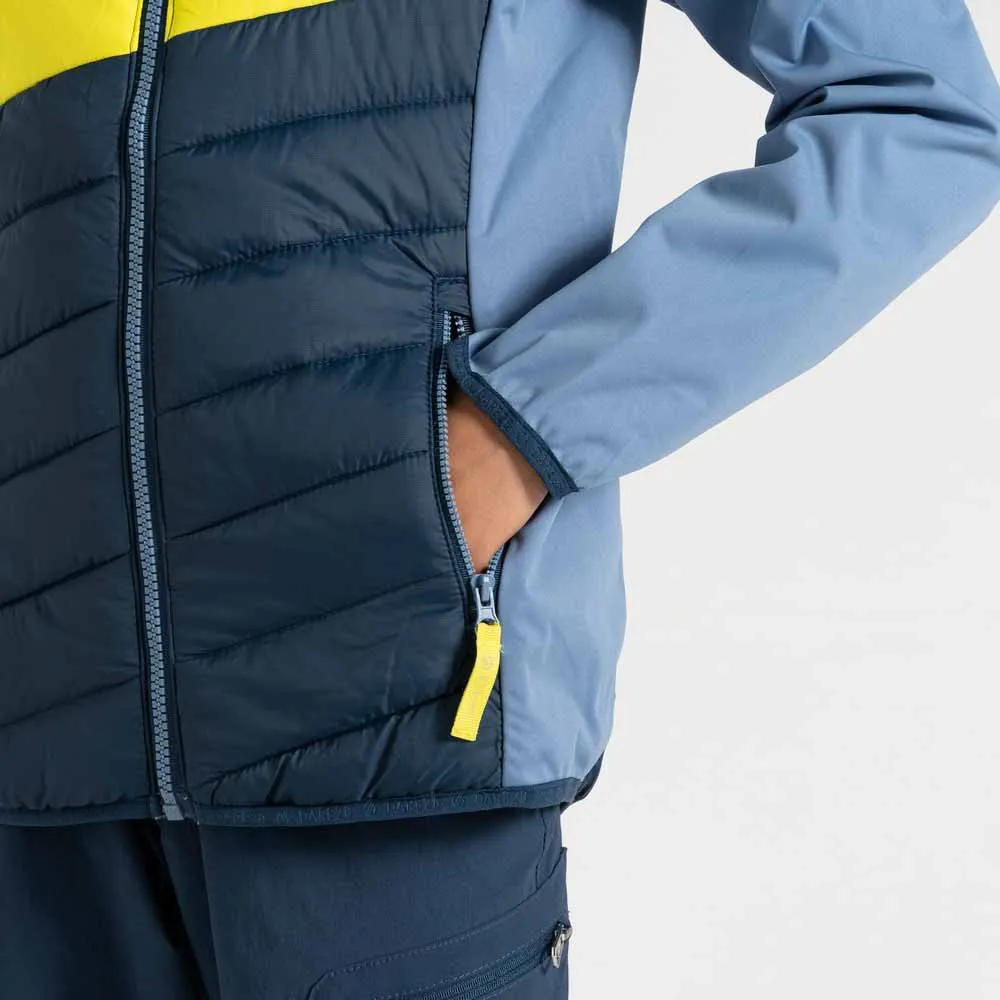 The kids´ hiking jacket comes with a baffled front filled with Iloft Ecofill padding so the cold won´t get a look in.