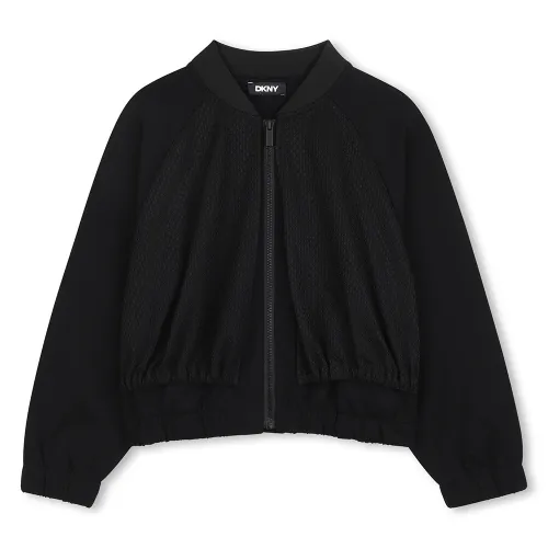 DKNY zip front closure. Composition: 62% viscose, 33% polyamide, 5% elastane - Trim: 96% polyester, 4% elastane - Lining: 98% polyester, 2% elastane.