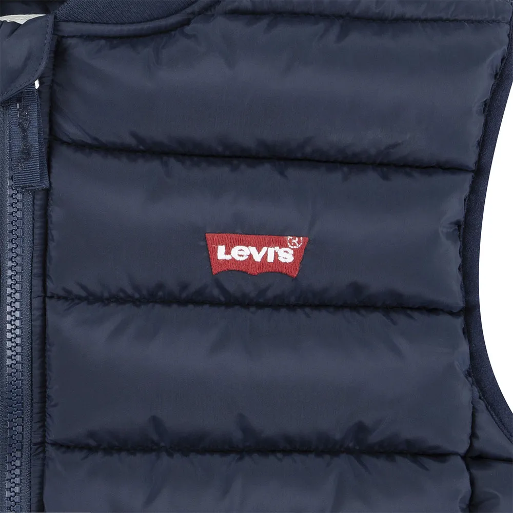 Kamizelka LEVI´S® Kids Midweight to niezbędny element garderoby każdego chłopca. Jej bezrękawny krój zapewnia całkowitą swobodę ruchów, co jest niezwykle ważne dla chłopców, którzy są ciągle w ruchu. Niezależnie od tego, czy wspina się na drzewa, jeździ na rowerze, czy po prostu odkrywa otaczający go świat, ta kamizelka mu nie przeszkodzi. Średniej grubości konstrukcja zapewnia odpowiednią ilość ciepła w chłodniejsze dni, nie będąc zbyt obszerna, dzięki czemu idealnie nadaje się do noszenia na bluzy z kapturem, swetry lub koszulki z długim rękawem.