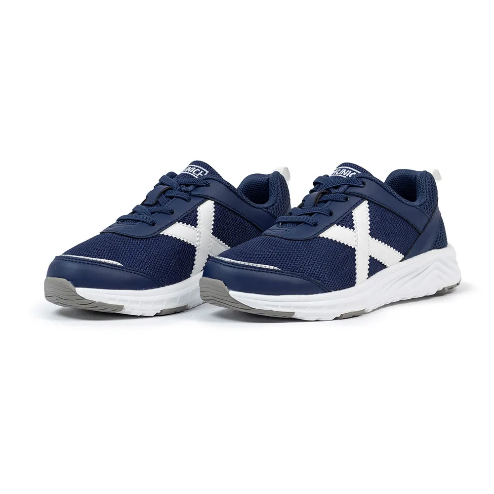 Poznaj MUNICH Fun 03: doskonałe buty sportowe dla Twojego aktywnego chłopca. Te sneakersy łączą modny, retro styl butów do biegania z wytrzymałością potrzebną do nieustannej zabawy. Wykonane z wytrzymałych materiałów syntetycznych, zapewniają komfort przez cały dzień dzięki amortyzowanej, pochłaniającej wstrząsy podeszwie. Co najlepsze dla rodziców? Można je w pełni prać w pralce, co zapewnia bezproblemowe czyszczenie. Dzięki bezpiecznemu sznurowanemu dopasowaniu i podeszwie zewnętrznej o wysokiej przyczepności, są idealnym, niezawodnym wyborem do szkoły, na plac zabaw i na każdą inną przygodę