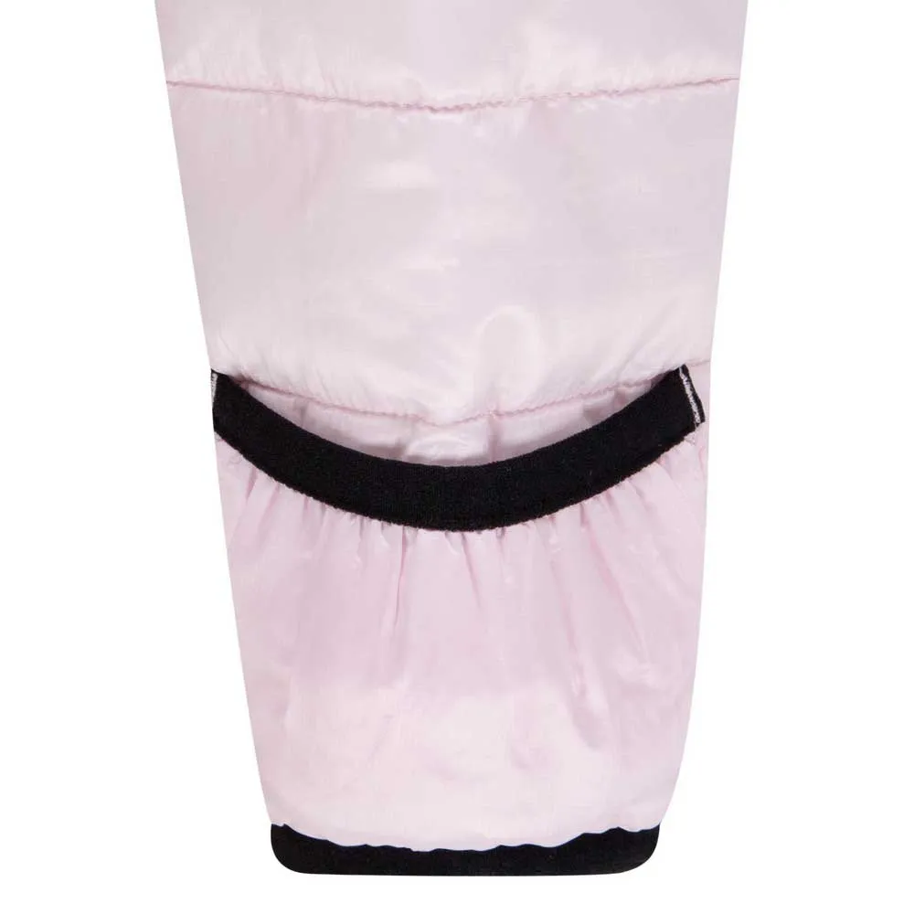 Otul swojego małego śnieżnego aniołka ciepłem w chłodniejsze miesiące w tym wygodnym kombinezonie śnieżnym z kapturem. Wykonany jest z tkanego poliestrowego materiału ripstop wykończonego pikowaniem na całej powierzchni i wypełniony miękkim sztucznym puchem dla przytulnego ciepła. Zapięcie na całej długości i obszerny krój ułatwiają ubieranie i nakładanie warstw, a składane rękawiczki i ocieplacze na stopy pomagają utrzymać ciepło małych paluszków u rąk i nóg.