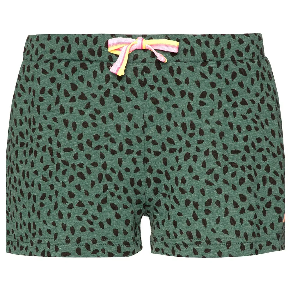 Nadruk na całej powierzchni, elastyczny pas, fantazyjna dzianinowa taśma przez oczka w pasie, taśma mocowana na bocznych szwach, boczne kieszenie.