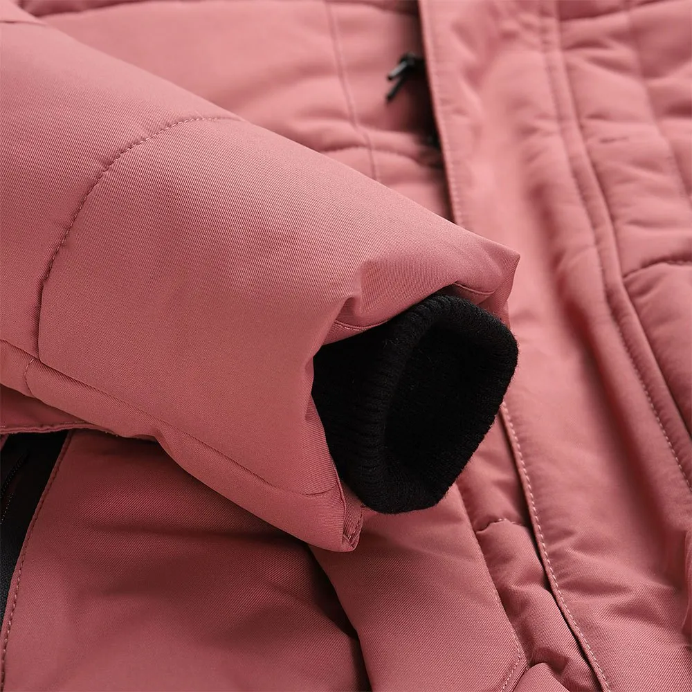 material impermeável, permeável ao vapor, resistente ao vento | acabamento do material membrana PTX, coluna de água 3 000 mm, permeabilidade ao vapor 3 000 g/ m2/ 24h, DWR | isolamento espesso, quente | forro acolchoado | corte regular fit | costura decorativa | capuz não removível | pele removível | mangas com punho de malha por dentro | parte inferior franzida com elástico | bolsos total 2 | patch na manga.
