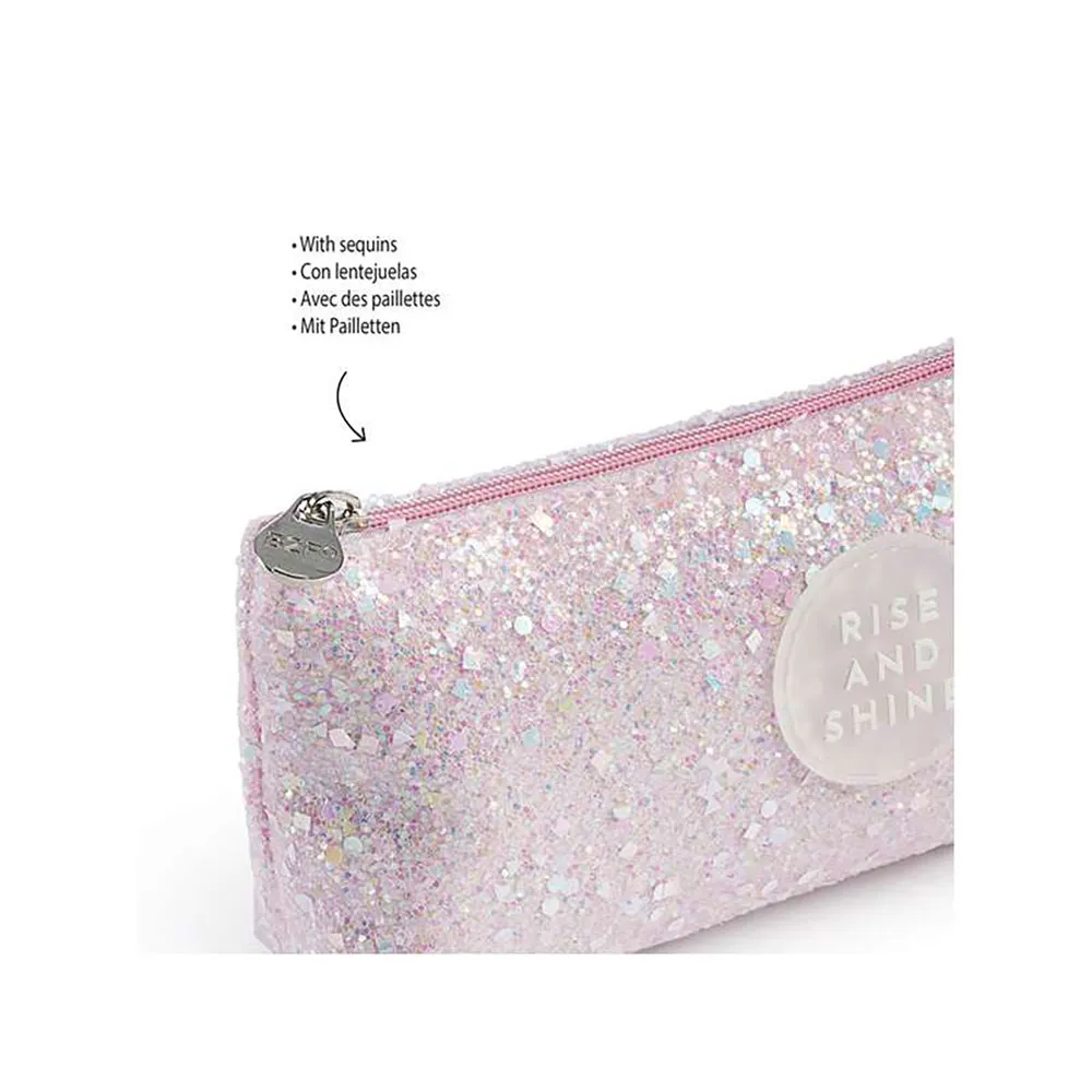 Estojo APLI B2F ´Rise and Shine´ com Glitter Rosa – Essencial Escolar Estiloso e Durável