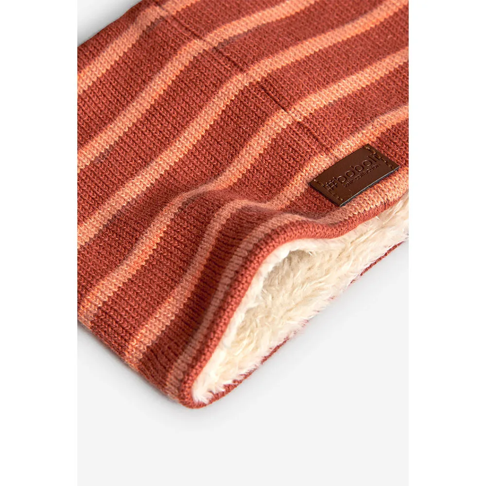 Com um design clássico listrado em tons de laranja, este acessório é perfeito para complementar qualquer roupa de inverno.