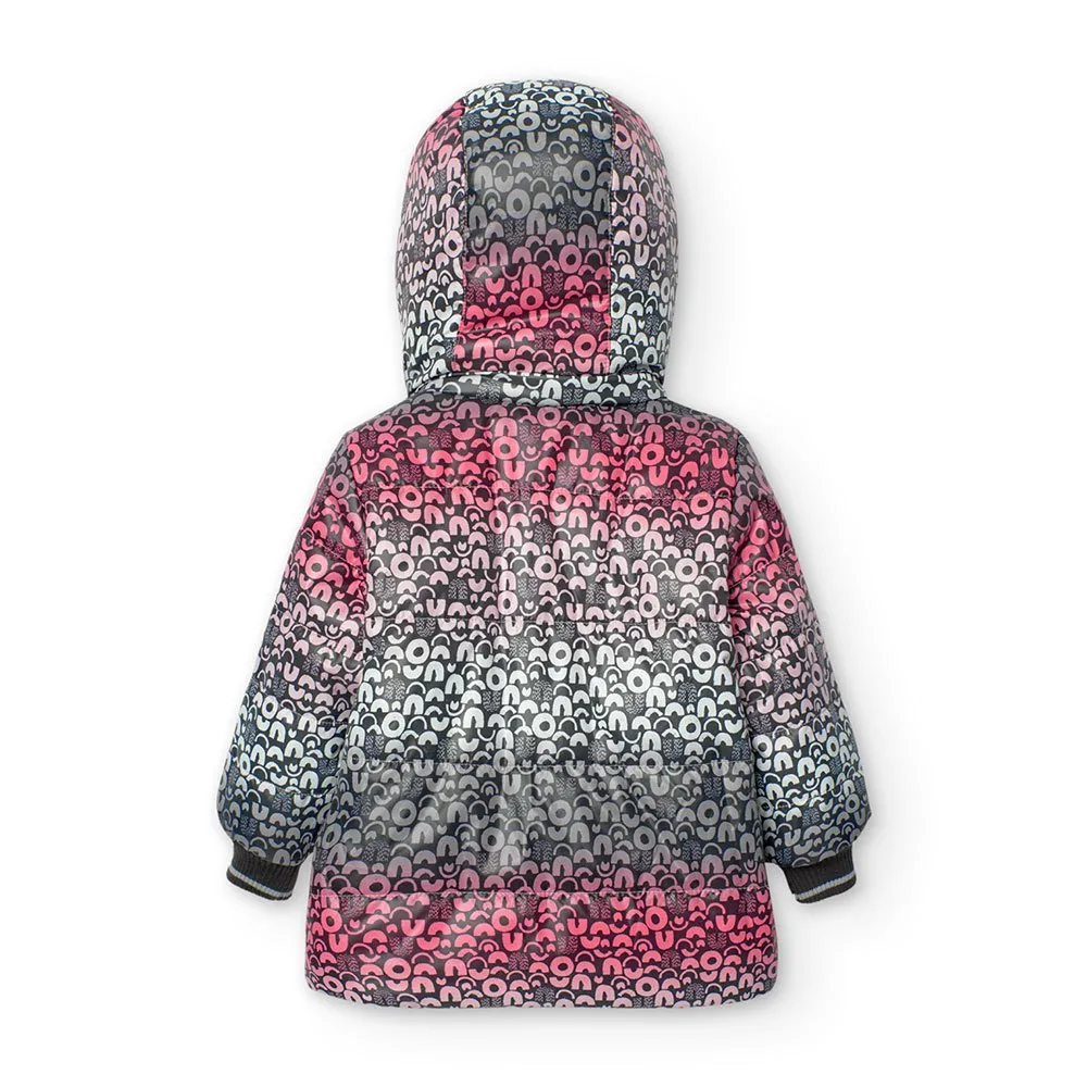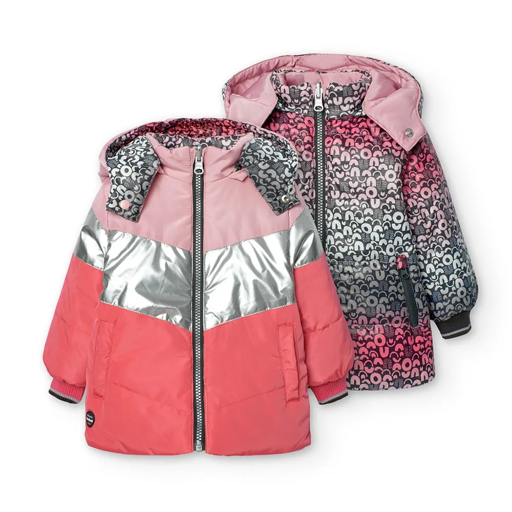 Esta é uma parka reversível para bebé menina, ideal para o inverno.