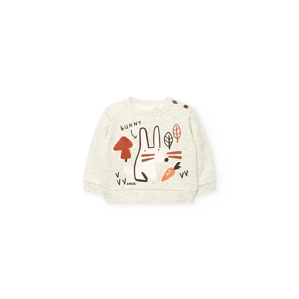 Conjunto de malha rústica para menino, adornado com um design de coelho fofo, inclui uma blusa e calças combinando, feito com materiais de malha de alta qualidade que garantem conforto e calor.