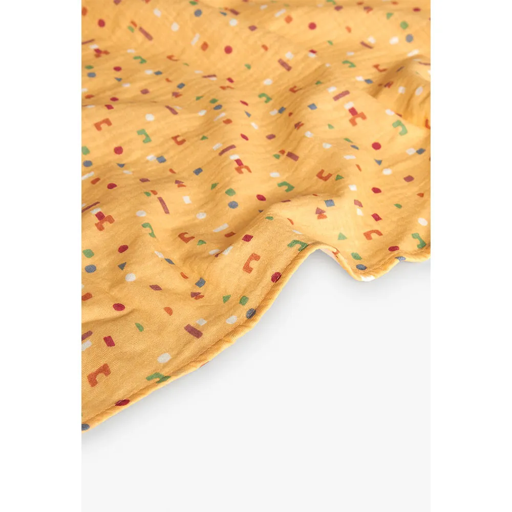 Conjunto de tricô para bebê com estampa multicolorida que inclui uma manta aconchegante e um babador combinando, ideal para manter os pequenos aquecidos durante os meses mais frios.