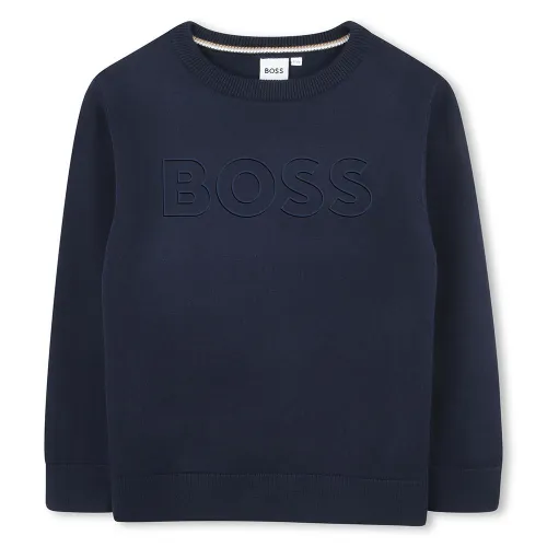 BOSS J52338 Suéter de Algodão com Logo para Meninos
