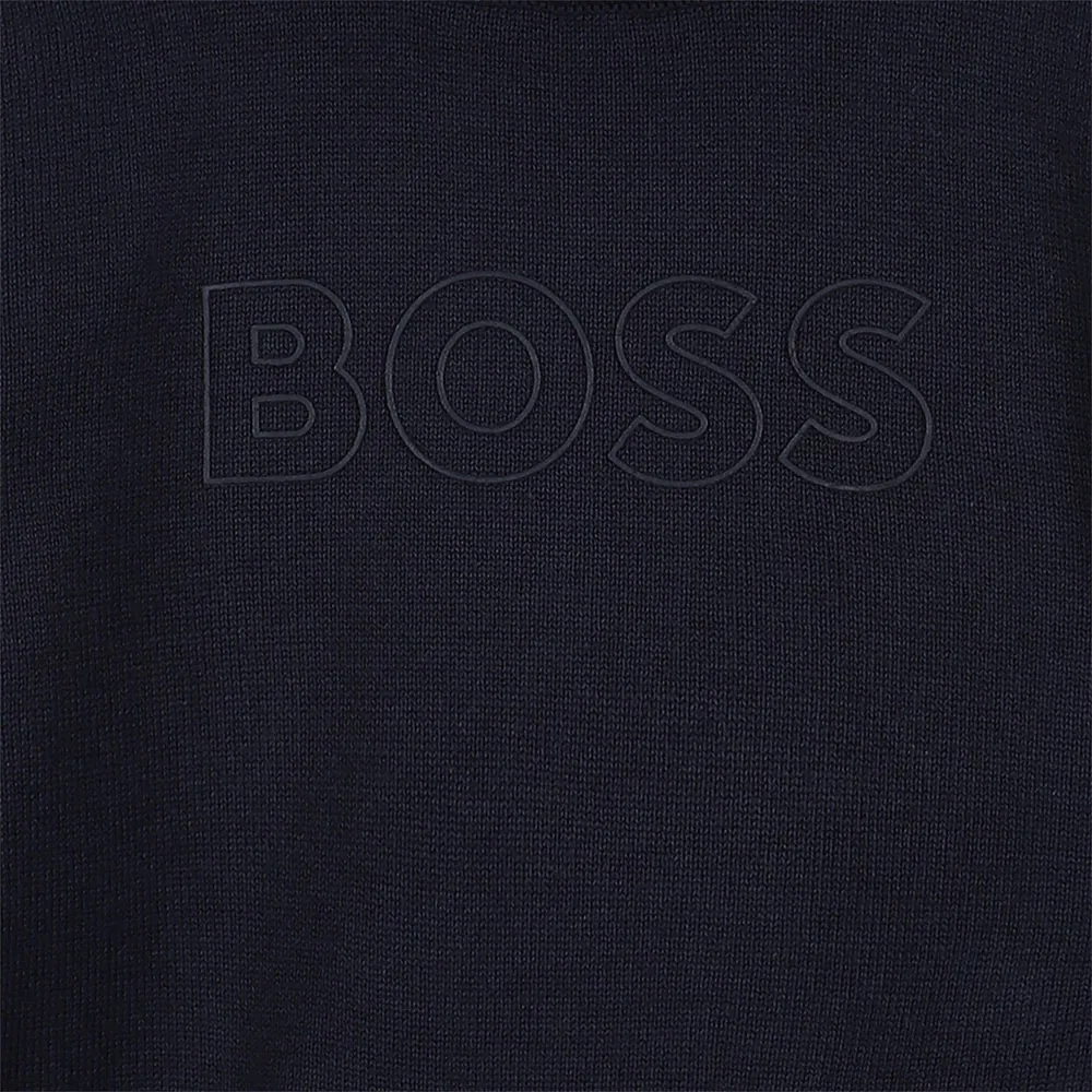 O design apresenta um corte clássico e confortável, permitindo fácil movimento e sobreposição de camadas. As linhas limpas e a silhueta intemporal são realçadas pelo icónico logótipo ´BOSS´, estampado de forma ousada mas elegante no peito. Este detalhe distintivo serve como um selo de qualidade e eleva instantaneamente a peça de uma simples camisola a uma declaração de gosto apurado. A malha finamente trabalhada proporciona uma textura subtil, enquanto o acabamento canelado na gola redonda, punhos e bainha garante um ajuste confortável e seguro, ajudando a reter o calor e a manter a forma da camisola ao longo do tempo.