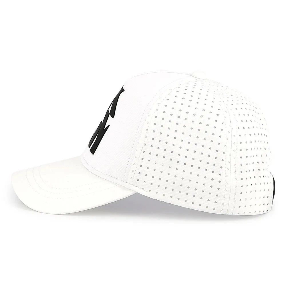 Boné em poliéster mate com parte traseira perfurada.