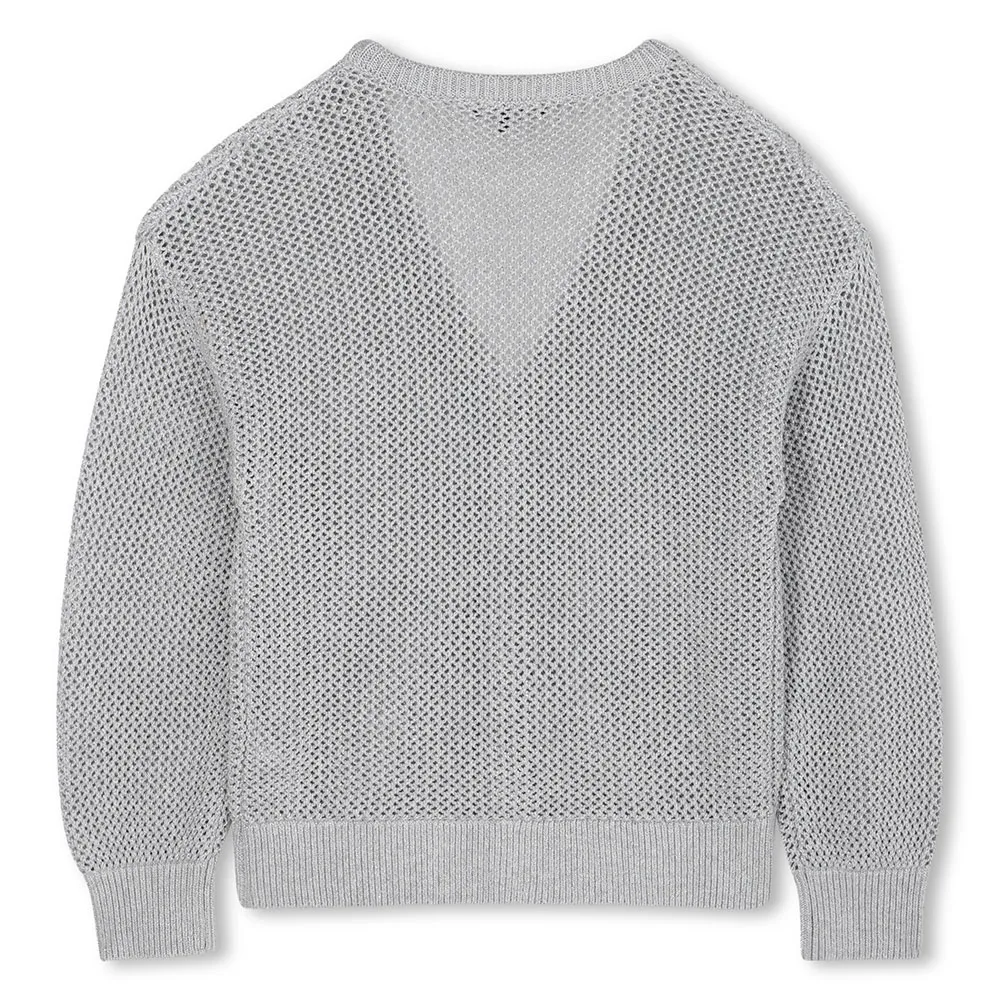Habilmente projetada como um cardigã de malha de algodão premium, esta jaqueta oferece maciez e respirabilidade excepcionais para conforto durante todo o dia. Um delicado detalhe de fio prateado é entrelaçado em todo o tecido de alta qualidade, que capta a luz para um toque sutil de brilho e glamour, distinguindo-a do vestuário de malha comum. Este recurso elegante adiciona uma camada de sofisticação, tornando a jaqueta adequada tanto para passeios casuais quanto para eventos mais formais.
