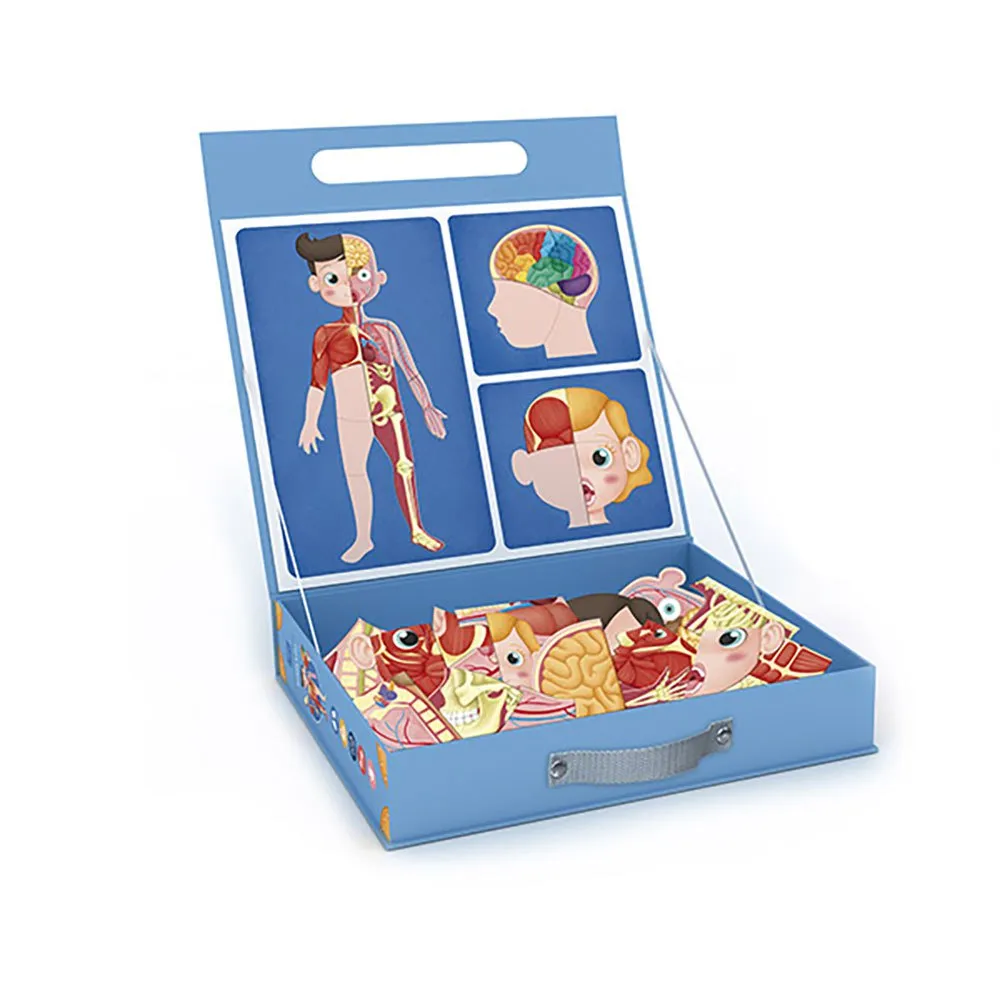 Este estojo educativo contém 100 peças magnéticas de diferentes partes do corpo humano.