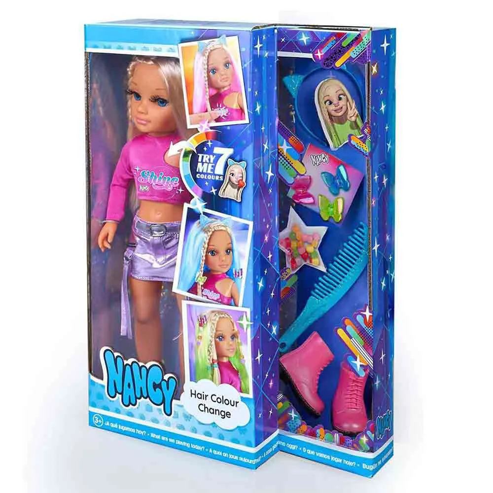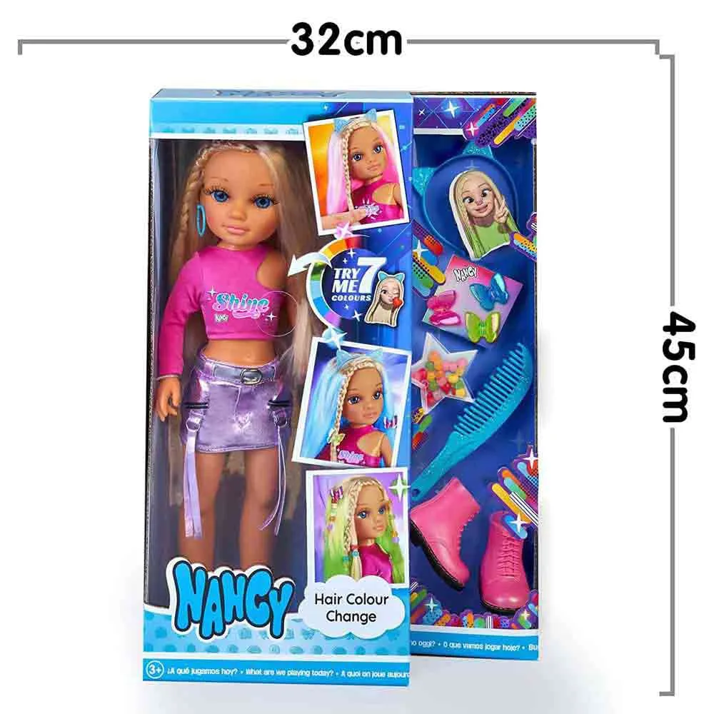 Com Nancy, a mudança de cor do cabelo, as meninas experimentarão a mudança de cor ao vivo apenas pressionando um botão.