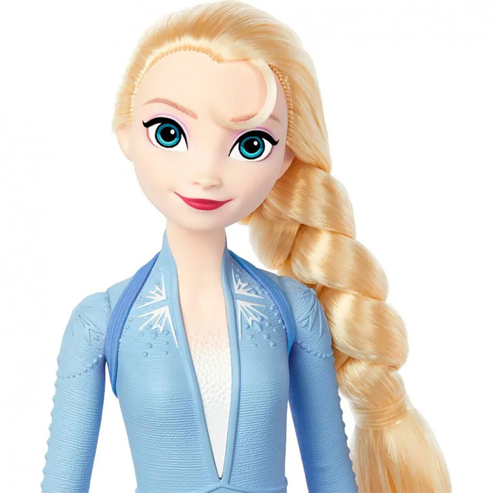 Inspirada na personagem animada do filme de sucesso da Disney "Frozen", esta boneca Elsa está pronta para abraçar seus poderes congelantes. Ao pressionar o botão na cabeça da boneca, as crianças podem cantar junto com os 30 segundos de "Let It Go" de Elsa. A boneca canta em inglês, espanhol, português e francês. Um adulto pode selecionar o idioma da boneca inserindo um clipe no orifício na parte de trás da boneca. A boneca Elsa articulada usa sua roupa característica, com uma saia e sapatos intercambiáveis, e cabelo comprido para um estilo divertido.