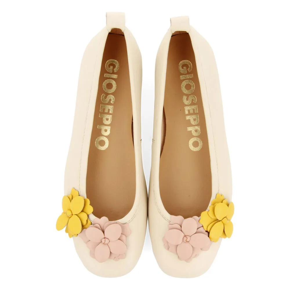 Perfeito para a época de eventos. Sapatilhas com enfeite floral na parte superior. Possui palmilha acolchoada em pele, curtida em curtumes que seguem um processo de curtimenta mais sustentável de acordo com os padrões do Leather Working Group (LWG). A sola é flexível para promover a mobilidade do pé. Siga as últimas tendências com a nova coleção Gioseppo Kids.