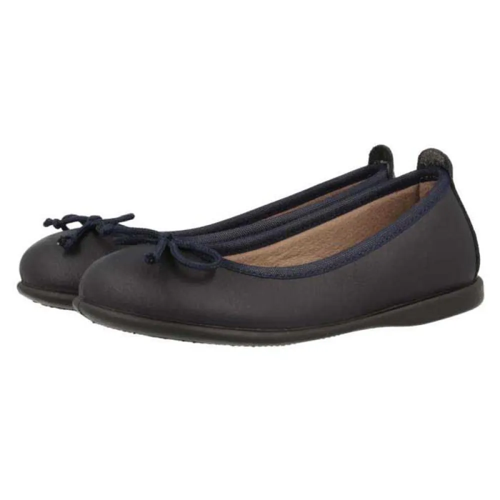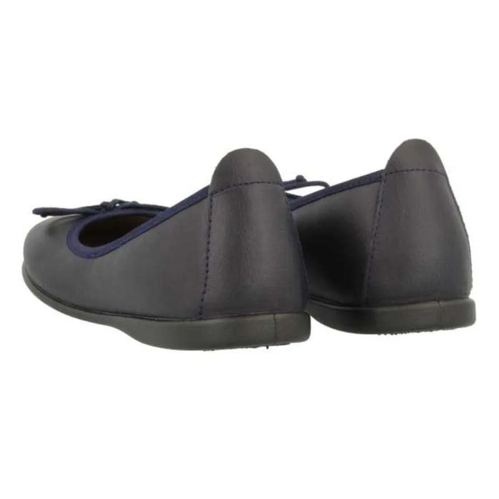 O design é atemporalmente chique. A clássica silhueta preta é lindamente acentuada com um delicado detalhe de laço na biqueira, adicionando um toque de elegância charmosa que ela vai adorar. Este embelezamento sutil eleva a simples sapatilha a um acessório elegante que complementa tanto o traje escolar formal quanto os looks casuais de fim de semana.