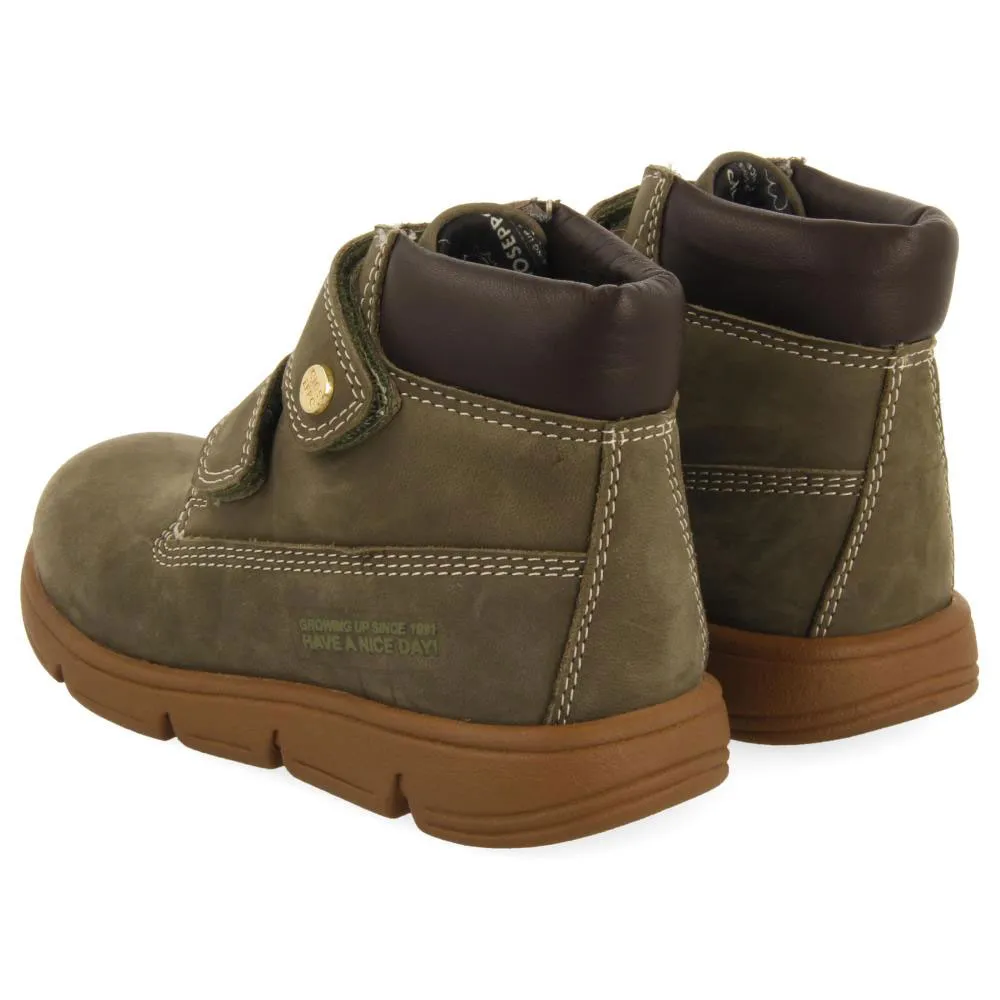 Perfeito para o dia a dia! Botas de cano baixo em couro cáqui com fechos ajustáveis.