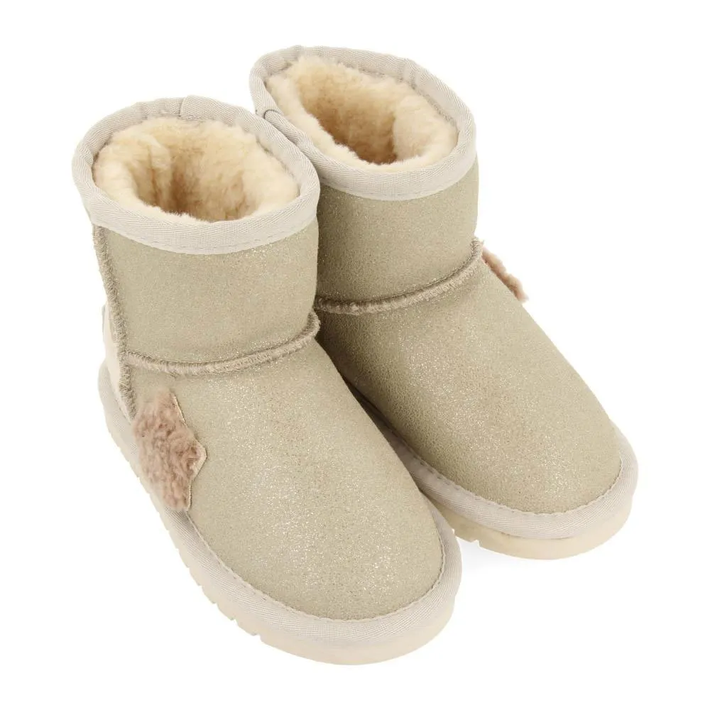 Botas estilo australiano off-white com detalhe em pelo efeito pele de carneiro.