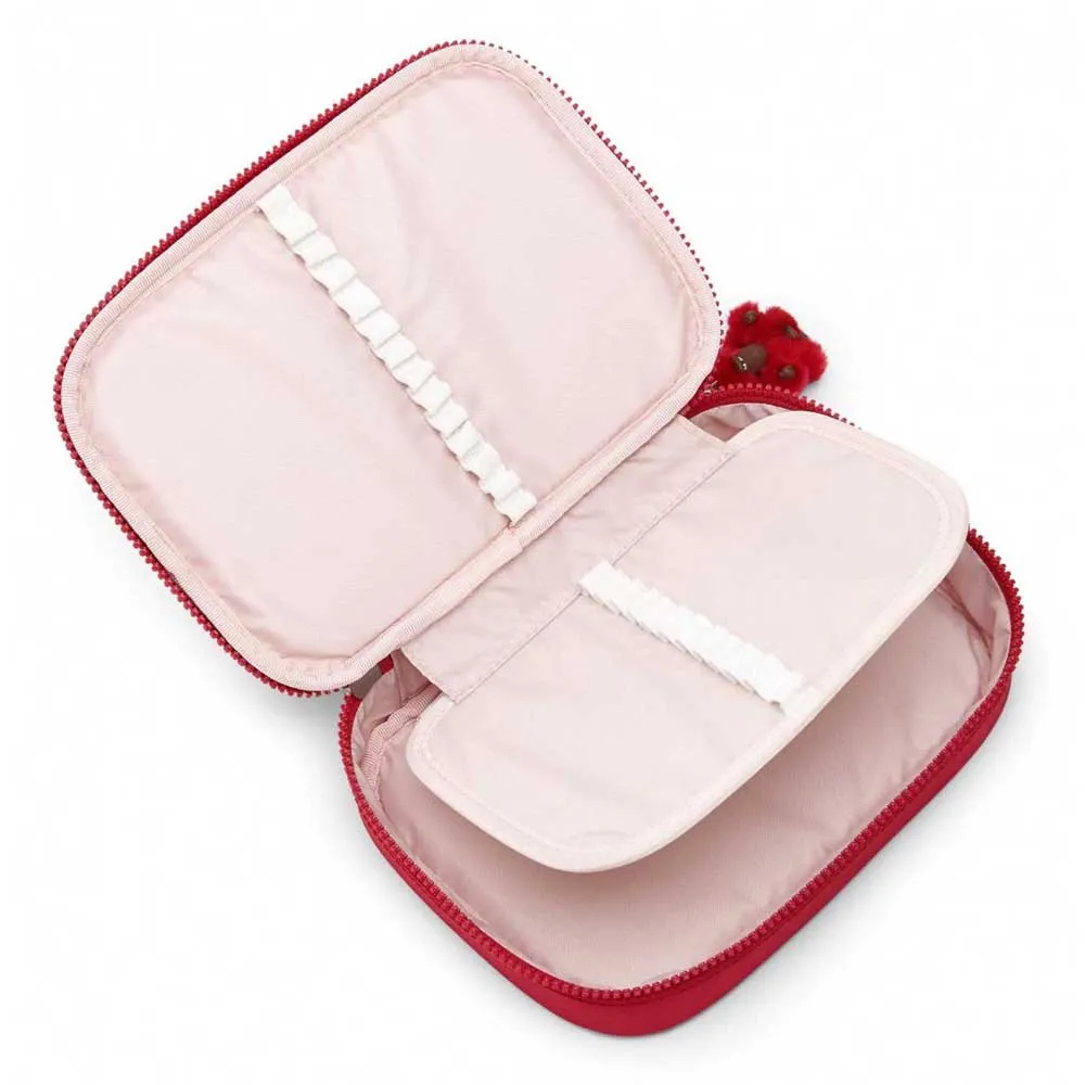 Organize seus itens essenciais com estilo com o Estojo Kipling 100 Pens. Sua capacidade impressionante comporta até 100 canetas, lápis ou marcadores, mantendo você preparado para qualquer tarefa criativa. Feito do nylon amassado resistente à água característico da Kipling, este estojo durável protege seus objetos de valor contra derramamentos e impactos. A ampla abertura com zíper oferece fácil acesso a um interior totalmente forrado com um prático bolso deslizante. Versátil o suficiente para materiais de arte, maquiagem ou acessórios tecnológicos, e finalizado com o icônico chaveiro de macaco da Kipling, é o companheiro perfeito para estudantes e artistas em movimento