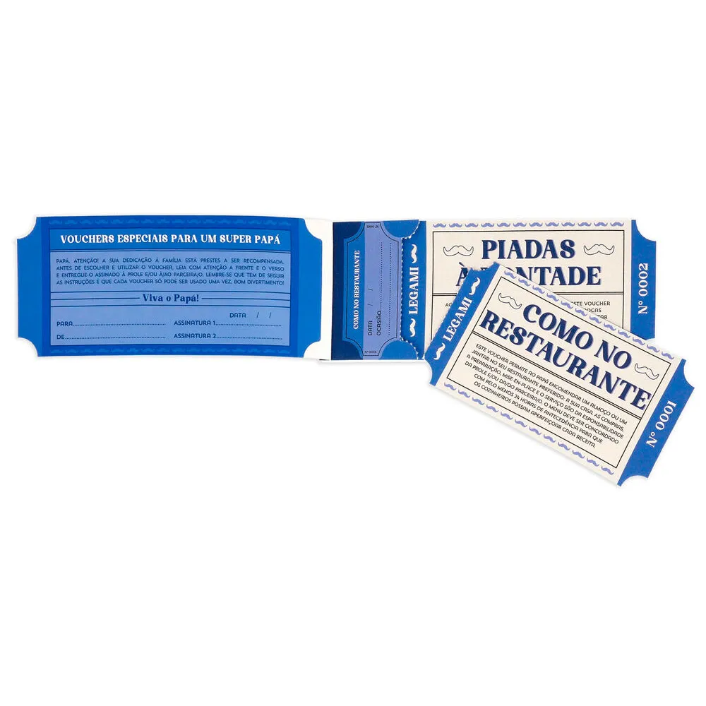 O design incorpora o estilo característico da Legami: divertido, colorido e cheio de charme. As páginas perfuradas de alta qualidade tornam fácil e satisfatório destacar cada vale ao apresentá-lo ou quando ele decidir "trocá-lo". Este elemento interativo torna a experiência de presentear divertida e envolvente para todos os envolvidos. Mais do que apenas um presente, este livro de vales é um catalisador para criar memórias duradouras. Imagine a alegria e o riso enquanto ele resgata um vale para uma noite de cinema de sua escolha ou uma mão amiga no jardim. É um presente que continua dando muito depois que a ocasião especial passou, fortalecendo seu vínculo a cada promessa cumprida. Mostre ao seu pai, sogro ou avô o quanto ele realmente significa para você com um presente criativo, atencioso e inesquecível que fala diretamente do coração.