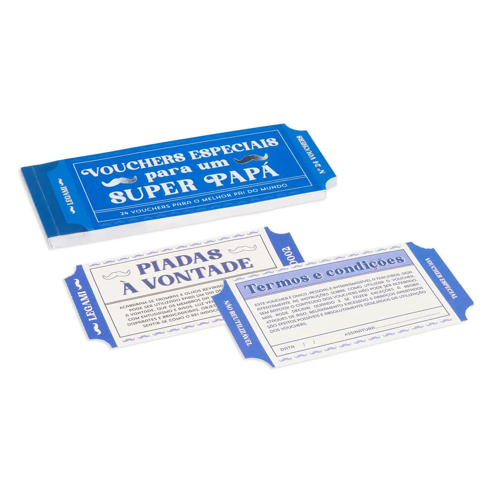 Celebre o herói da sua vida com o Livro de Vales Presente "Para o Meu Pai" da Legami, o presente perfeito para o pai que tem tudo. Encontrar um presente verdadeiramente único e sincero para o pai pode ser um desafio, mas este livro de vales lindamente projetado oferece a solução perfeita. Vá além dos presentes tradicionais e dê algo muito mais valioso: o presente do seu tempo, apreço e memórias compartilhadas. Isto não é apenas um item de papelaria; é uma coleção de promessas, um tesouro de momentos futuros esperando para serem desfrutados juntos. É a maneira perfeita de dizer "obrigado" por todas as coisas grandes e pequenas que ele faz, tornando-o uma escolha ideal para o Dia dos Pais, seu aniversário, Natal ou simplesmente como um sinal espontâneo do seu amor.