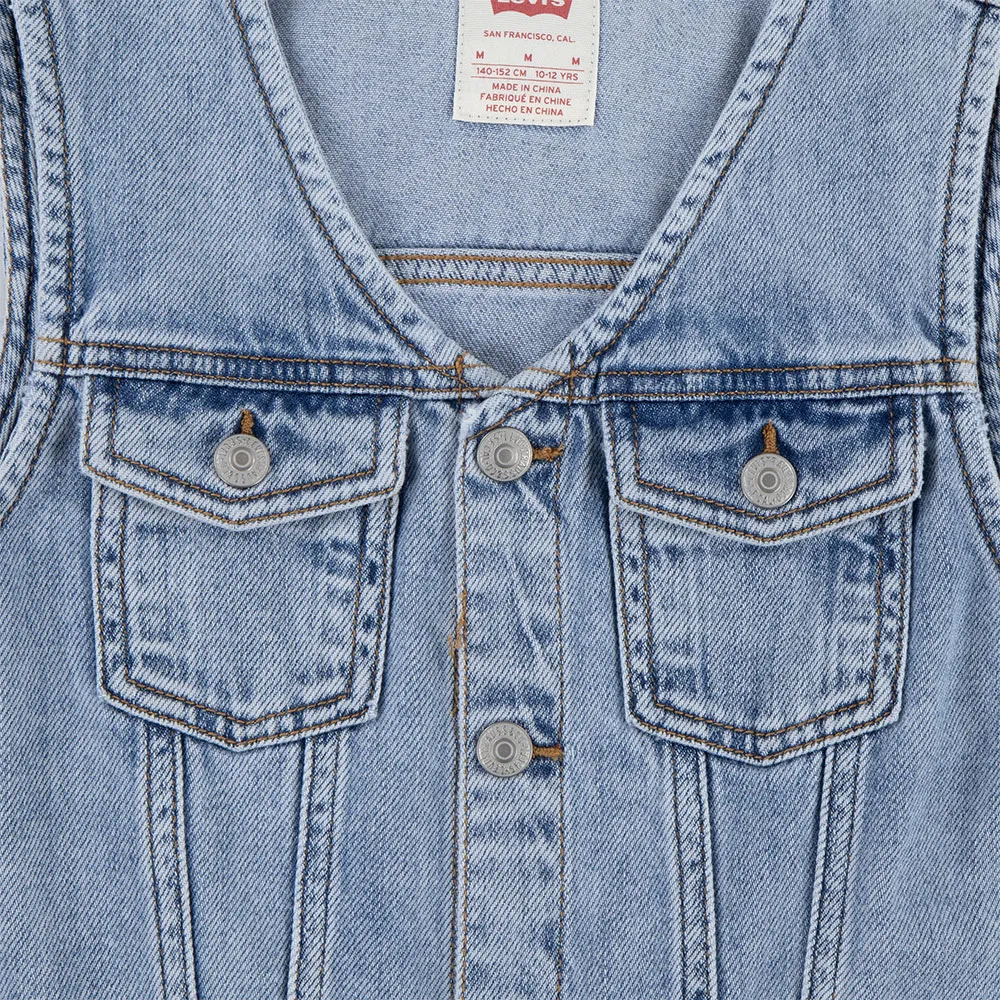 Dê ao guarda-roupa da sua pequena uma atualização atemporal com o icônico colete jeans LEVI´S® Kids. Esta peça clássica é perfeita para sobrepor a tudo, desde camisetas a vestidos, adicionando um toque cool a qualquer roupa. Projetado para meninas e com um design sem mangas e sem capuz, este colete oferece movimento e conforto irrestritos para o uso durante todo o dia. É ideal para a transição entre as estações, proporcionando a quantidade certa de calor sem ser volumoso.