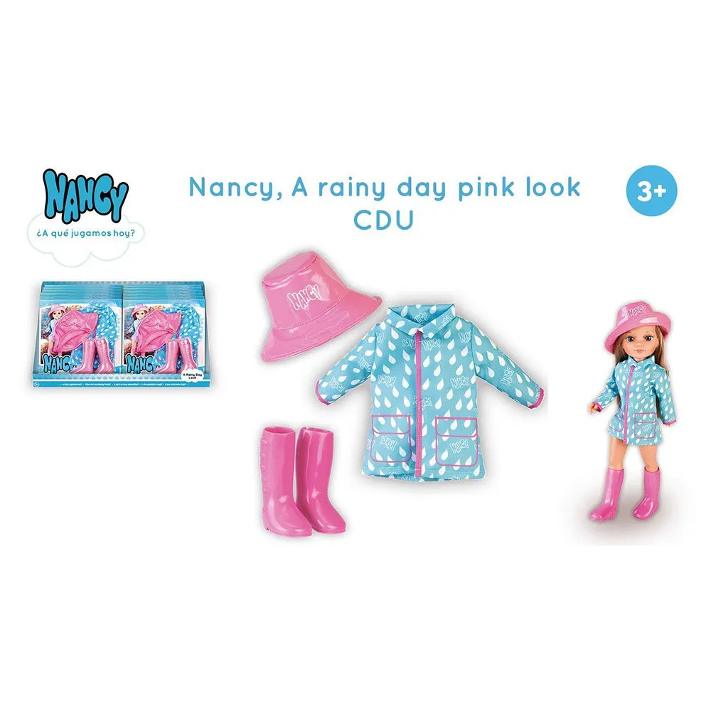 Inclui galochas cor-de-rosa que permitirão à nancy saltar em todas as poças e divertir-se sem parar.