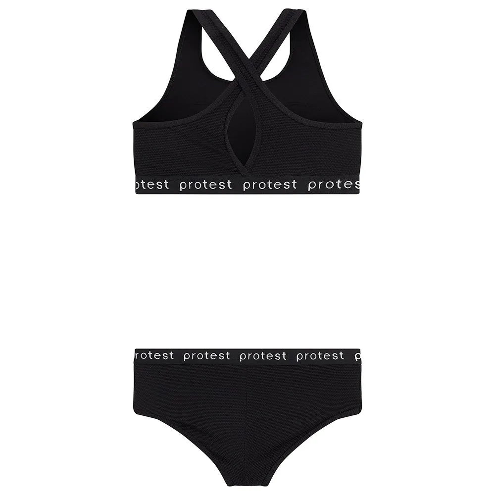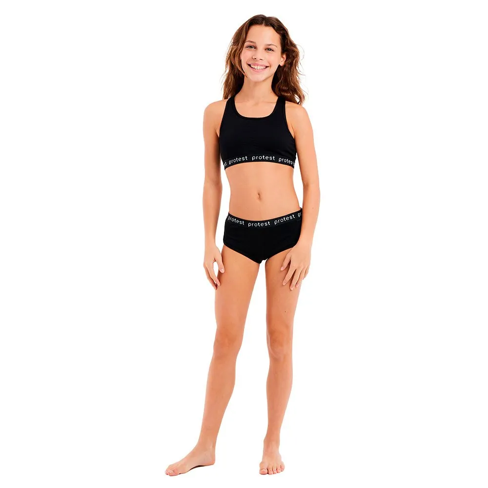 O PRTBEAU JR da Protest é o biquíni perfeito para sua ação de verão. Este biquíni feito de um tecido texturizado. A parte de baixo do biquíni tem um caimento moderno. A parte de cima do biquíni tem enchimento removível nos tamanhos 140 – 176 e tem um estilo nadador nas costas. O tecido também é livre de PFC em um esforço para reduzir o uso desse produto químico e, portanto, prejudicar o meio ambiente. Esteja pronto para a praia no PRTBEAU JR by Protest.