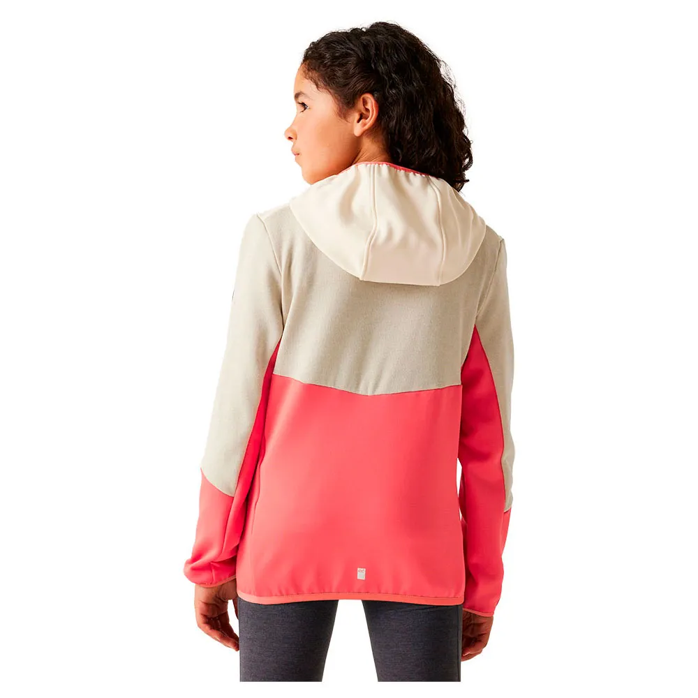 Confortável e prático, nosso fleece com zíper é perfeito para jovens aventureiros. Feito de uma mistura de poliéster, viscose e elastano com um efeito mesclado, o fleece infantil oferece uma camada durável, confortável e estilosa. Possui painéis Extol Stretch, proporcionando maior flexibilidade e conforto para brincadeiras ativas. O capuz integrado e a ligação elástica na abertura do capuz, punhos e bainha garantem um ajuste perfeito. Projetado com uma proteção de queixo para maior conforto e dois bolsos inferiores com zíper para armazenamento seguro, este fleece infantil é prático e aconchegante. O acabamento refletivo aumenta a visibilidade para maior segurança, ideal para aventuras ao ar livre.