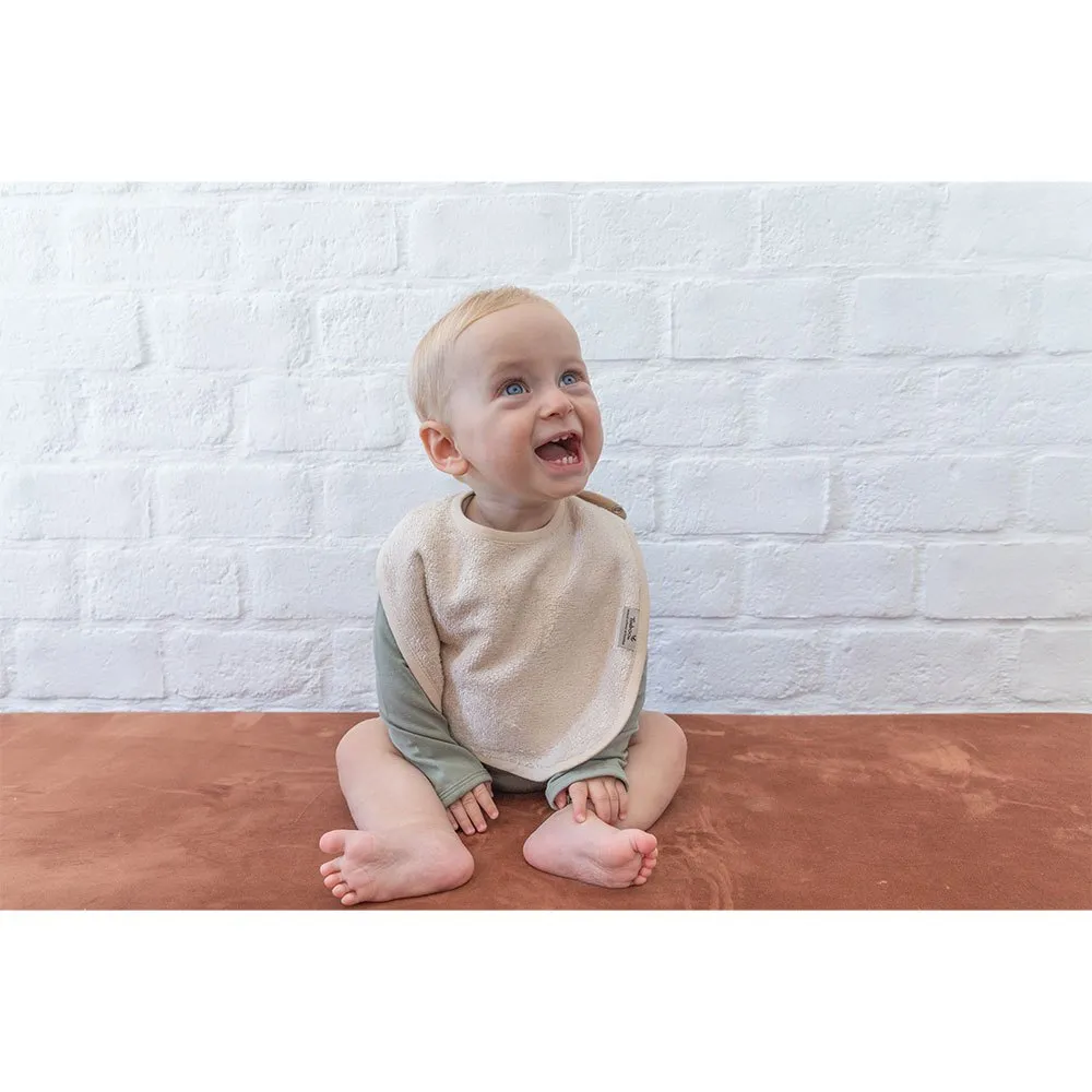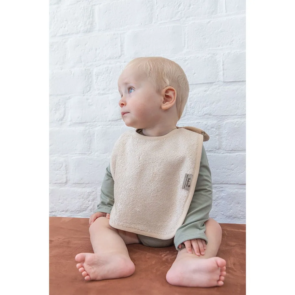 Os babetes para bebés são feitos de 90% bambu e 10% poliéster.