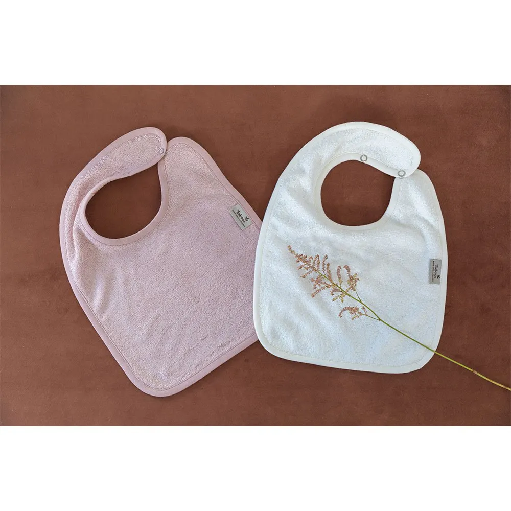 Os babadores para bebés são feitos de 90% bambu e 10% poliéster.